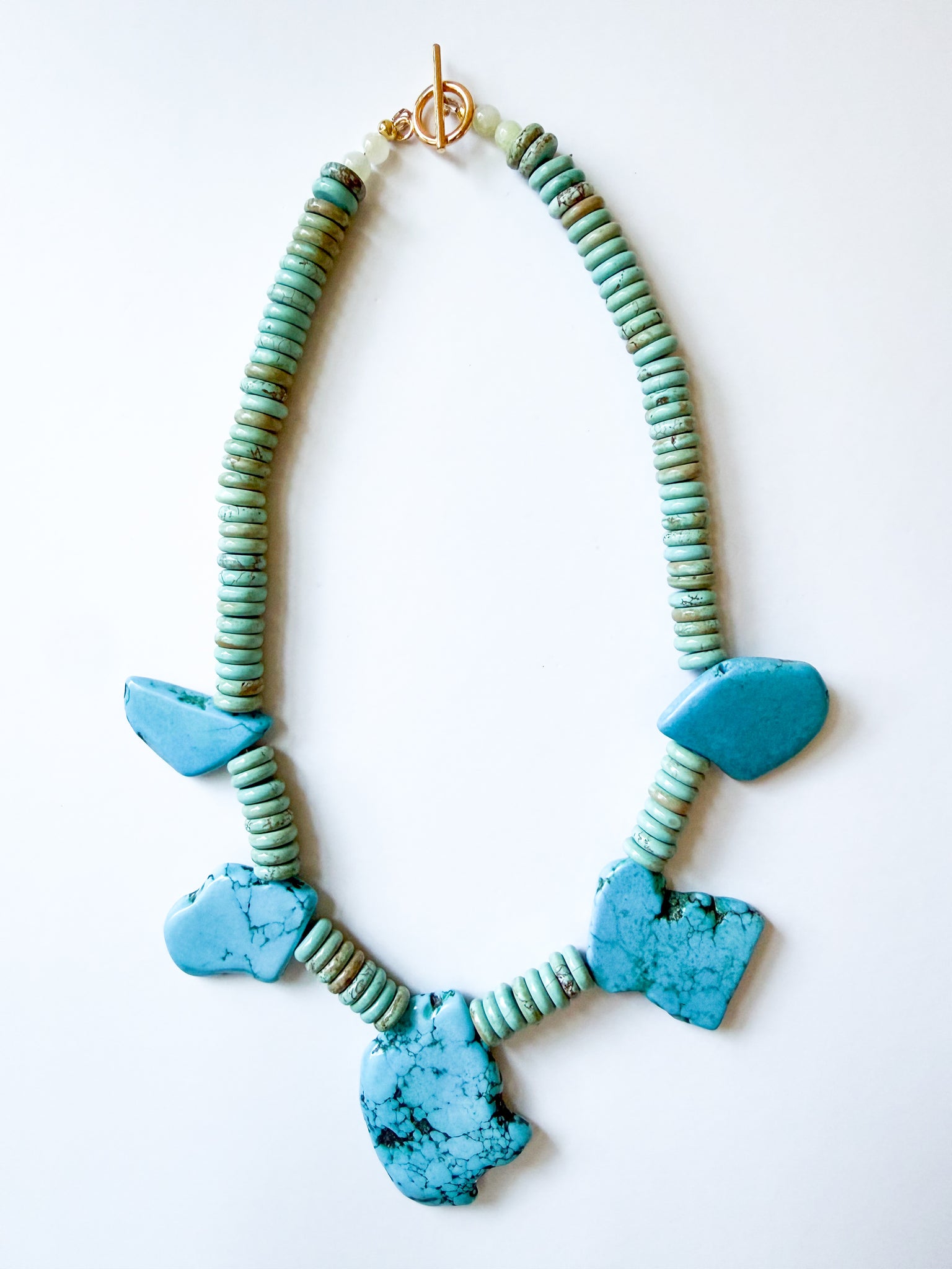 Handcrafted with bold turquoise stone and natural heishi-style beads for a striking, organic look.